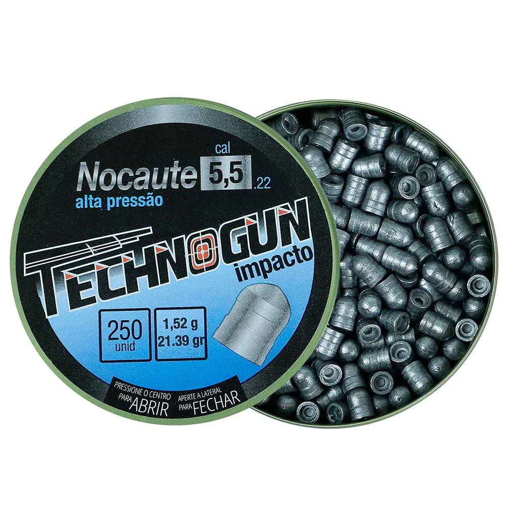 O Nocaute foi projetado para tiros em curta e longa distância, com dois únicos objetivos: PRECISÃO e IMPACTO. Com peso de 1,52g(22gr), apenas no calibre 5,5, e indicado especialmente para ser utilizado em armas ALTA PRESSÃO.